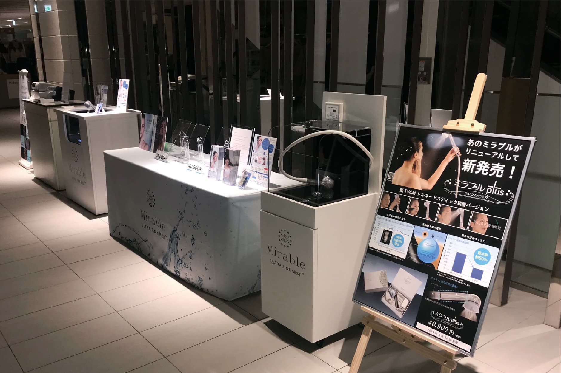 イベント企画・運営サポート・プロモーションツールデザイン制作 ウルトラファインバブル生成シャワーヘッド ミラブル plus タッチ&トライプロモーションイベント。 TVCMと同じようにウルトラファインバブルの効果を 体験・体感いただくことを目的に、 大阪・東京など全国の主要都市6会場で実施。